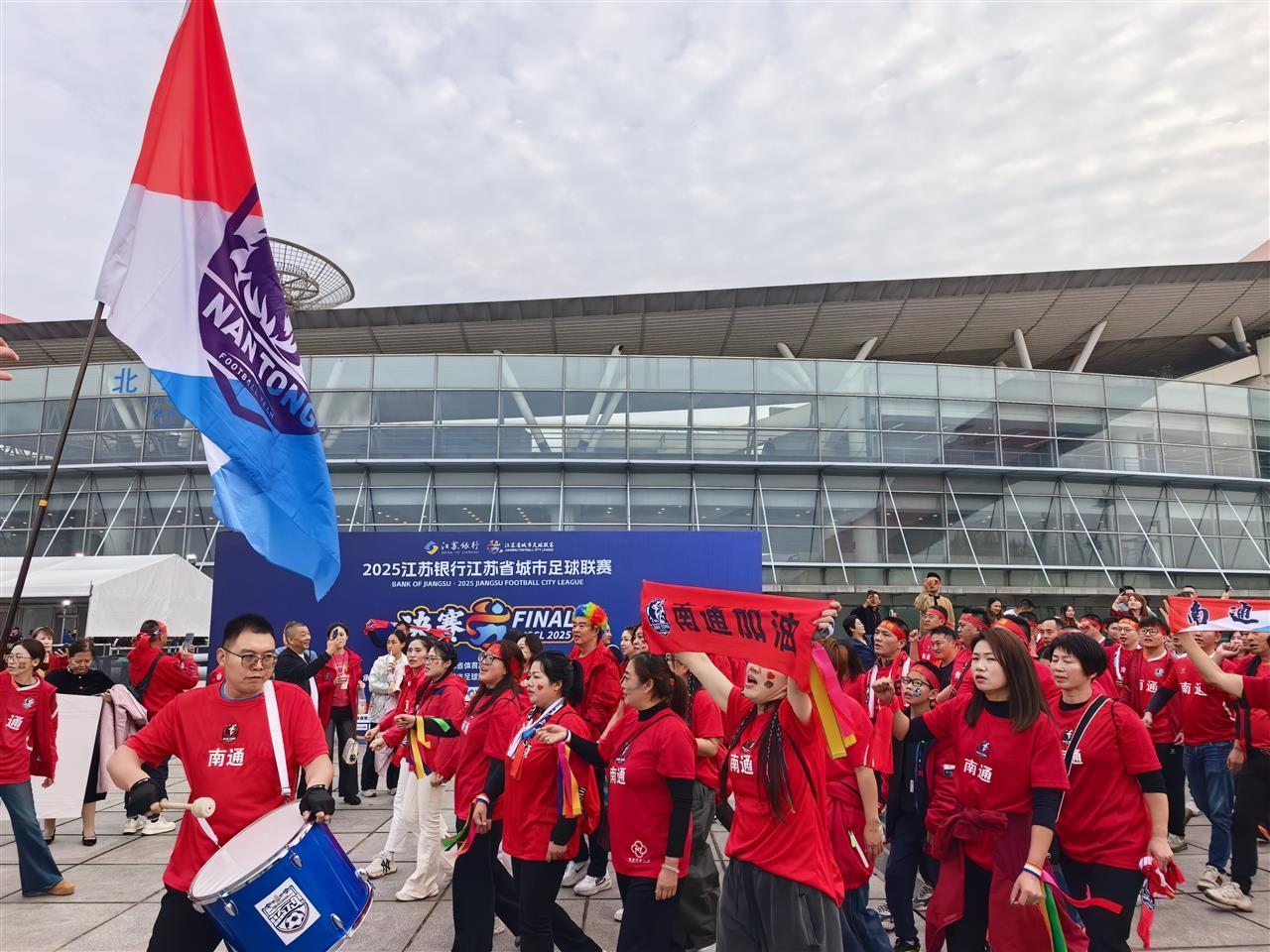 “我们南通一往无前Go!Go!Go!”11月1日下午,南通队球迷在开赛前提前三小时抵达南京奥体中心体育场。多支由球迷会组成的南通队应援队伍,排列有序地在场外激情呐喊,为南通队加油助威,唱起助威歌《光荣属于南通》。