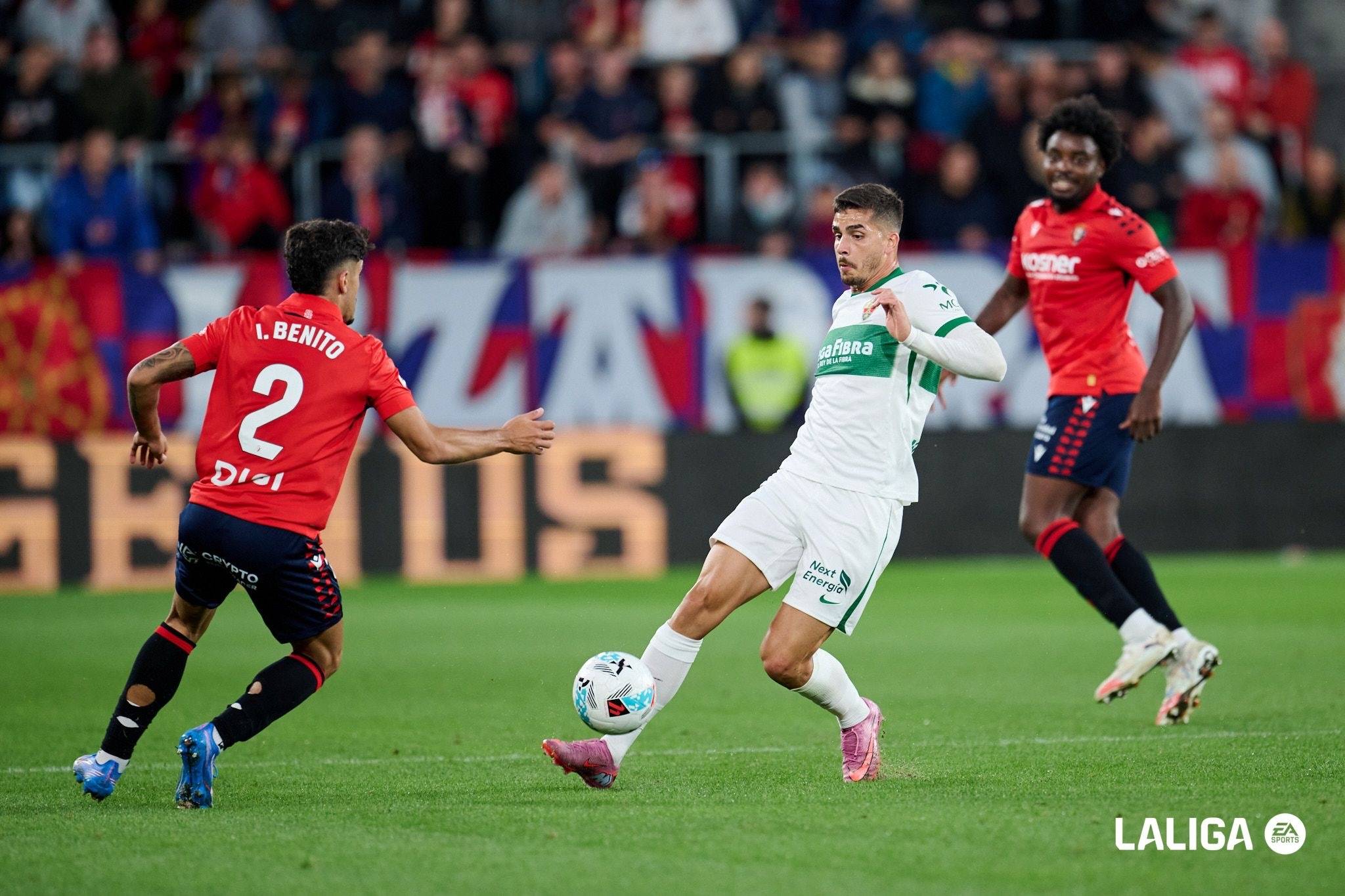 比赛第35分钟,奥萨苏纳率先打破僵局。卡泰纳在右路敏锐地发现了埃尔切防线的漏洞,一记精准的贴地直塞穿透两名防守球员。穆尼奥斯心领神会地前插到位,冷静推射球门远角得手。这个进球展现了奥萨苏纳流畅的进攻配合,也让埃尔切陷入了被动。