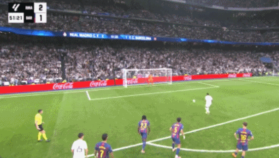 下半场第49分钟,贝林厄姆创造了点球,随后姆巴佩主罚打门被门将什琴斯尼扑出,皇马错失将比分扩大为3-1的机会。第68分钟,贝林厄姆低射破门,因迪亚斯接球时越位在先,进球无效。最终,皇马还是2-1拿下胜利。