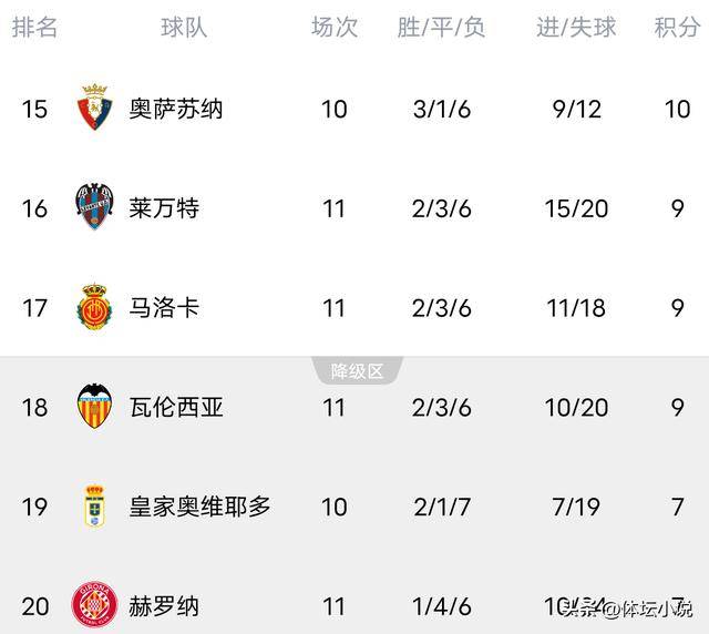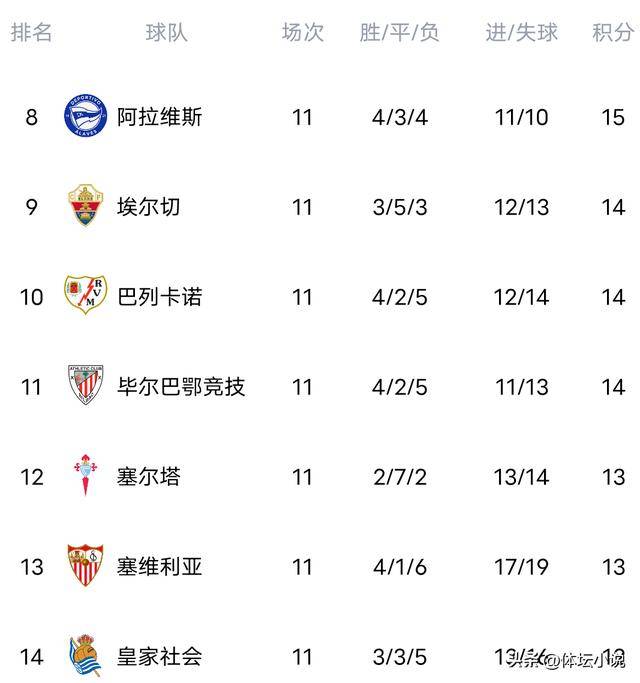 小编 西甲积分榜 2025-11-04