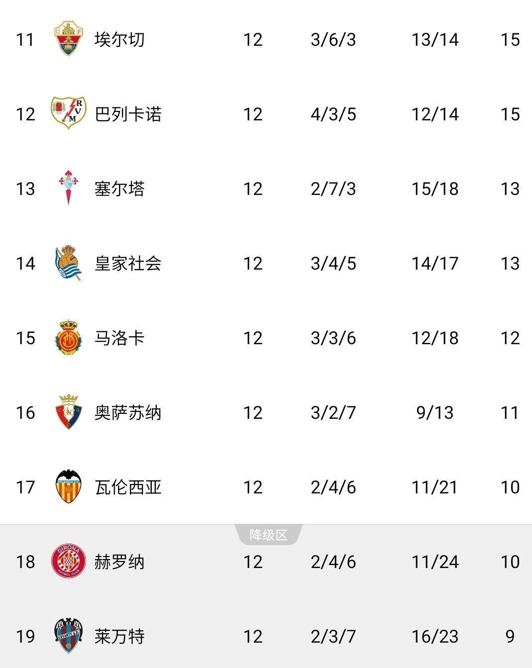 其他场次也没闲着。 瓦伦西亚1-1绝平皇家贝蒂斯,安东尼全场3次射门全部打飞,贝蒂斯到手的3分变1分。 毕尔巴鄂竞技靠尼科-威廉斯的进球1-0小胜奥维耶多;马略卡同样1-0险胜赫塔菲,靠防守偷鸡成功。 积分榜上,比利亚雷亚尔26分排第三,马竞25分第四,贝蒂斯20分卡位第五。