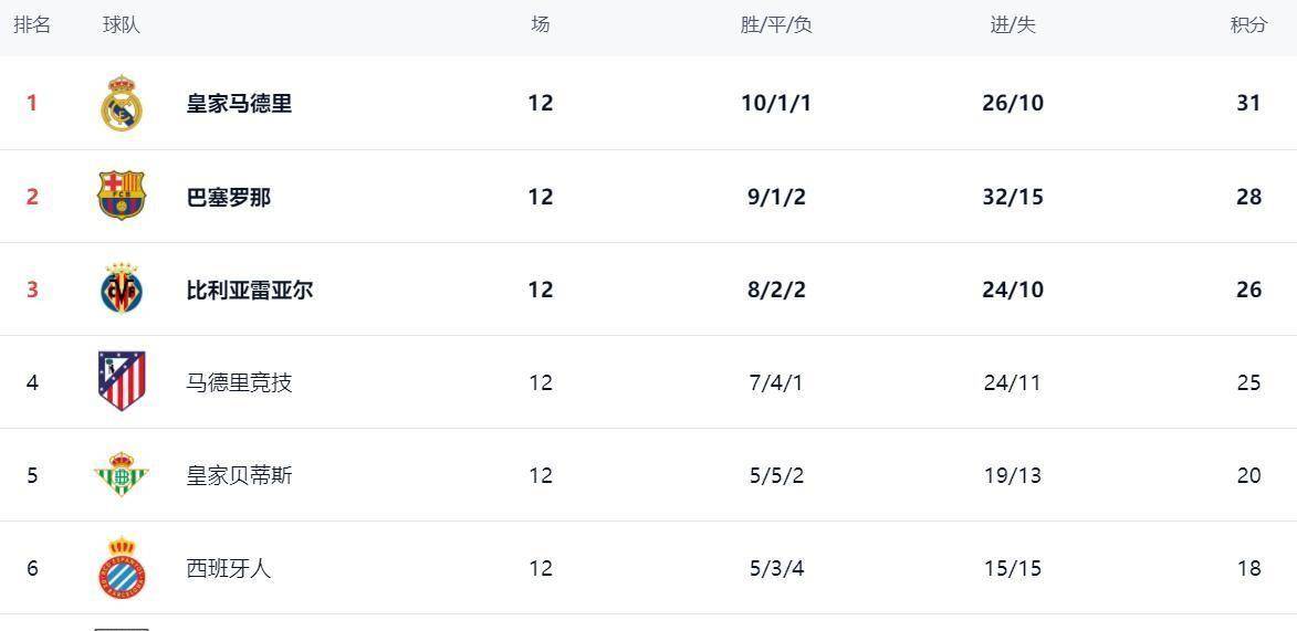 比利亚雷亚尔也是势头正猛,客场2-0完胜西班牙人,莫雷诺和莫莱罗各进一球。 这场赢球后比利亚雷亚尔已经拿到了26分,排在积分榜第三位,就比巴萨少2分,这匹黑马本赛季的表现真是让人刮目相看。