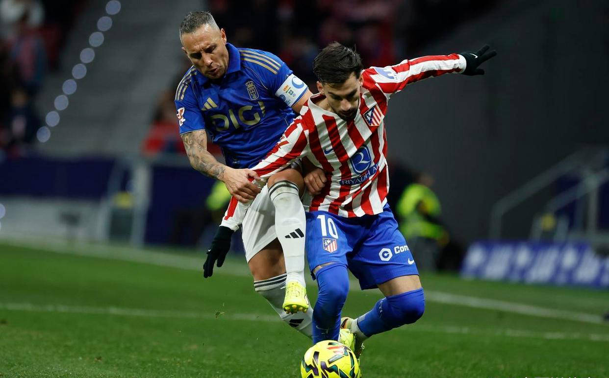 本轮焦点莫过于状态火热的马竞。自上个月初被塞尔塔逼平后,马竞开启连胜模式,上周末客场战胜赫塔菲后已经连续五场告捷。这场对阵积分垫底且状态低迷的奥维耶多,马竞依然保持高昂士气。比赛刚开场不久,第8分钟,马竞通过左路快攻制造威胁,索尔洛特强行突破禁区小角度射门,门将埃斯坎德利奋力扑救。第15分钟,马竞发动前场流畅配合,冈萨雷斯精准直塞巴埃纳,巴埃纳送出横传助攻,汉茨科跟进传球到门前,索尔洛特门线前冷静补射破门,为球队取得领先。