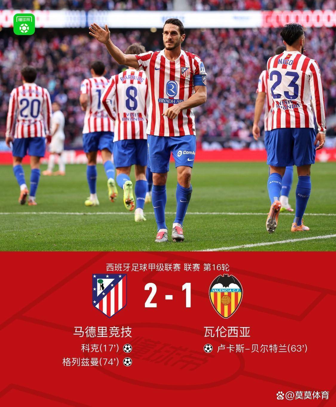 马竞与瓦伦西亚的对决堪称跌宕起伏。第17分钟科克禁区外低平抽射打破僵局,正当马竞占据优势时,贝尔特兰第63分钟轰出无解世界波扳平比分,让比赛悬念拉满。关键时刻格列兹曼挺身而出,第74分钟接队友过顶长传,停球转身抽射一气呵成完成绝杀,2-1锁定胜局!瓦伦西亚两次进球均因越位被判无效,运气与实力双双掉线分深陷降级区边缘。