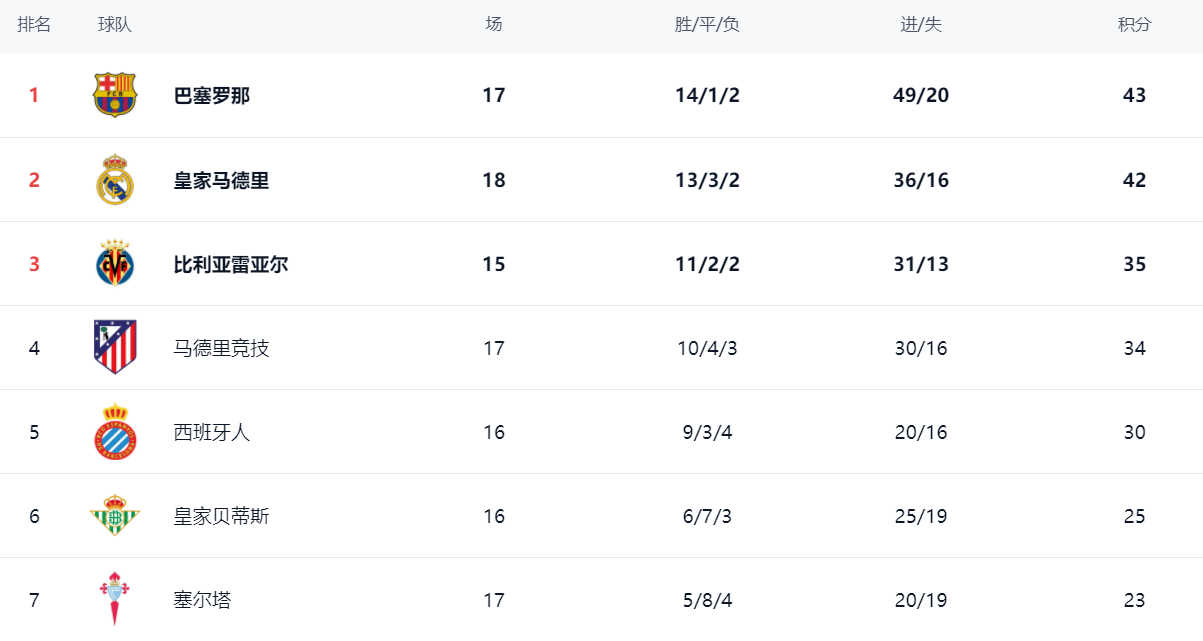小编 西甲积分榜 2025-12-23
