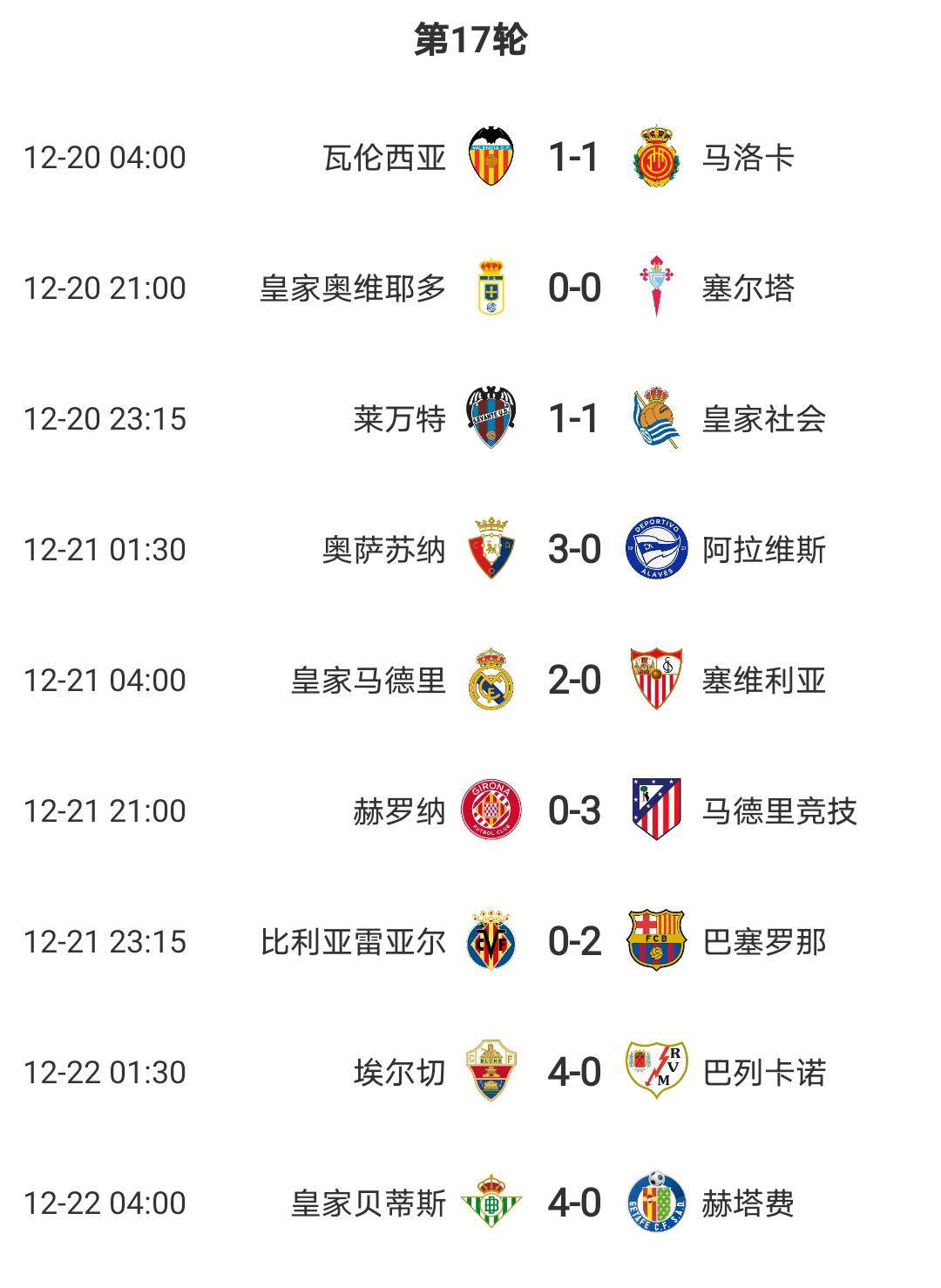 西甲直播,西甲赛程,西甲积分榜,皇马vs巴萨直播,西甲比分预测/为中文用户提供2025赛季西甲联赛全方位资讯:免费高清中文直播入口、赛程表、积分榜更新、皇马与巴萨动态追踪、竞彩推荐与比分预测。今天凌晨,随着西甲第17轮最后一场比赛的结束,新一轮的积分榜和射手榜正式揭晓。让我们详细回顾这场关键战役以及联赛整体格局的最新变化。