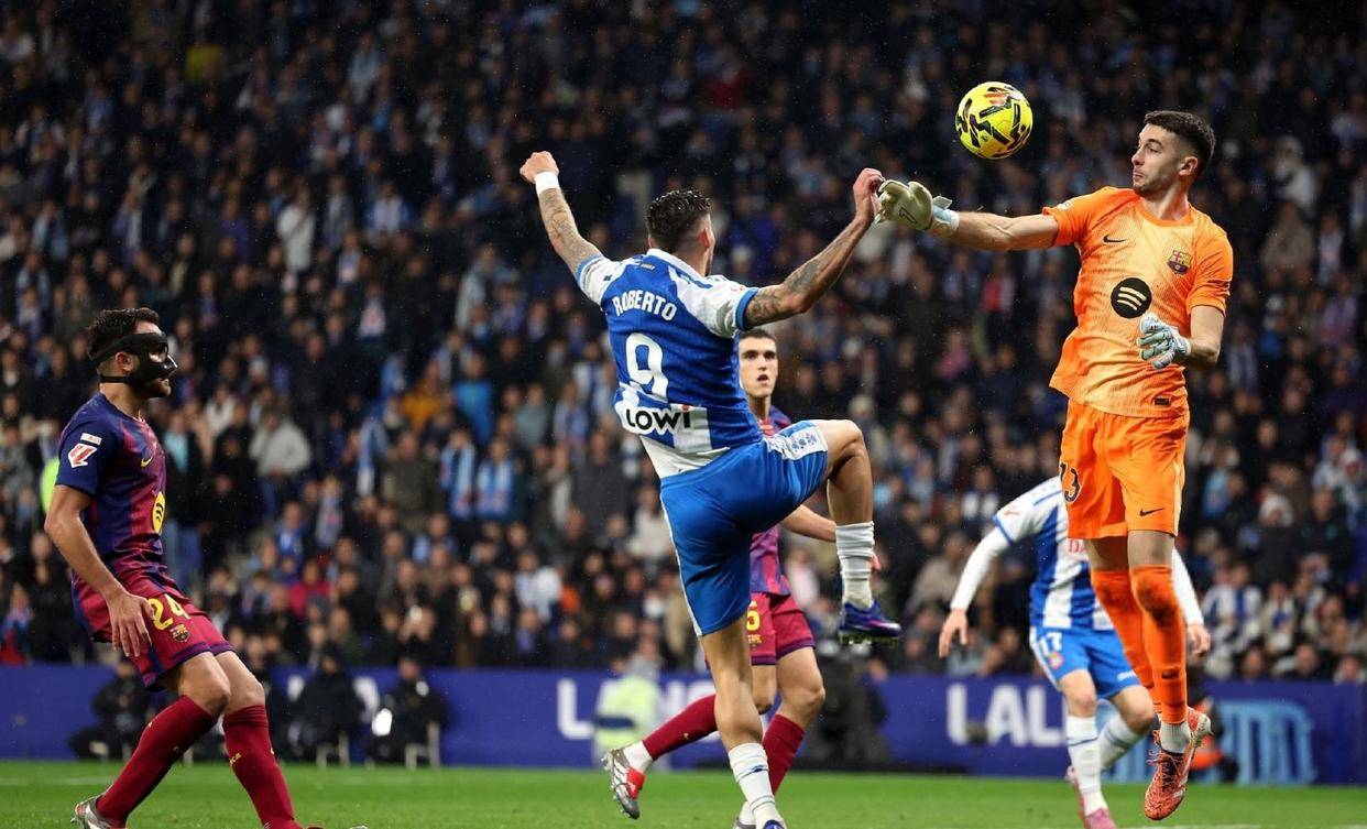 整个上半场,巴萨虽然控球率占优,但进攻显得沉闷而缓慢,难以创造出真正的威胁。反而是西班牙人,利用简洁快速的转换制造了数次绝佳机会。第18分钟,费尔南德斯反越位成功获得单刀,但他的推射被巴萨门将霍安·加西亚用腿神勇挡出。第40分钟,佩雷·米拉在门前近距离的头球冲顶,再次被加西亚飞身扑出底线。可以说,如果不是加西亚有如神助般的表现,巴萨在上半场就可能陷入落后的困境。