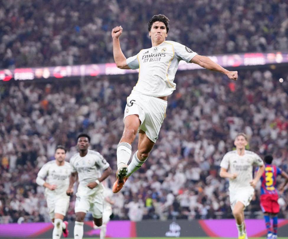 在本赛季首回合西班牙国家德比战中,皇马在主场2-1力克巴萨,止住了面对后者连败的颓势,为了延续强势的发挥,阿隆索摆出了442的阵型,首发门将库尔图瓦,劳尔阿森西奥、琼阿梅尼、赫伊森和卡雷拉斯组成四后卫,巴尔韦德、贝林厄姆、卡马文加和罗德里戈在中场一字排开,双箭头则是贡萨洛加西亚搭档维尼修斯。