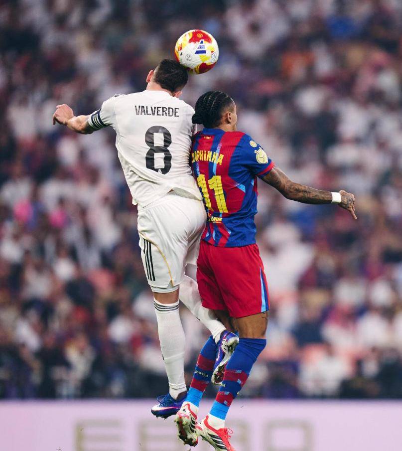 随着主裁一声哨响,两支球队就拉开架势对攻,第34分钟亚马尔妙传,可惜拉菲尼亚的单刀机会踢偏,不过2分钟之后,他就弥补了遗憾,左路带球杀入禁区后低射远角建功,帮助巴萨取得了1-0的领先,第47分钟维尼修斯还以颜色,左路单挑巴萨整条后防,打入一记天秀进球,终结长达3个月的进球荒,将比分追至1平。