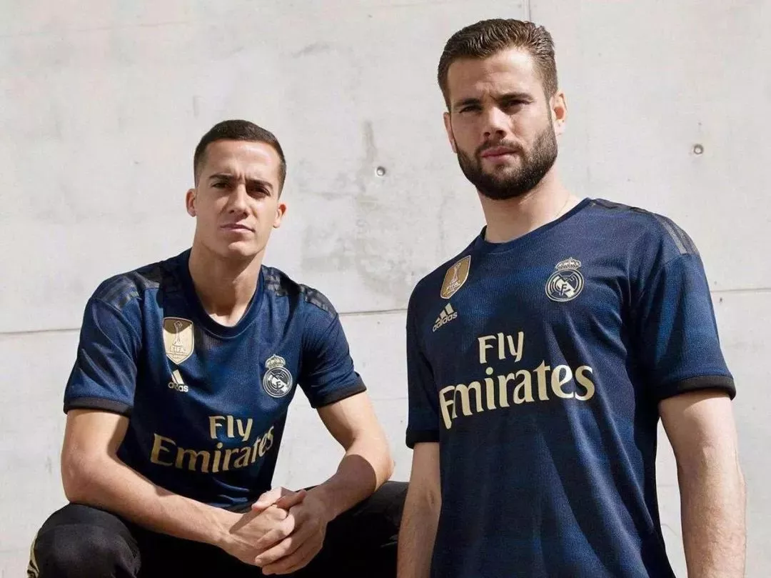 客场球衣选用深藏波纹的深蓝色,如同暗涛汹涌的海洋,灵感来源于伯纳乌球场激情四射的氛围。