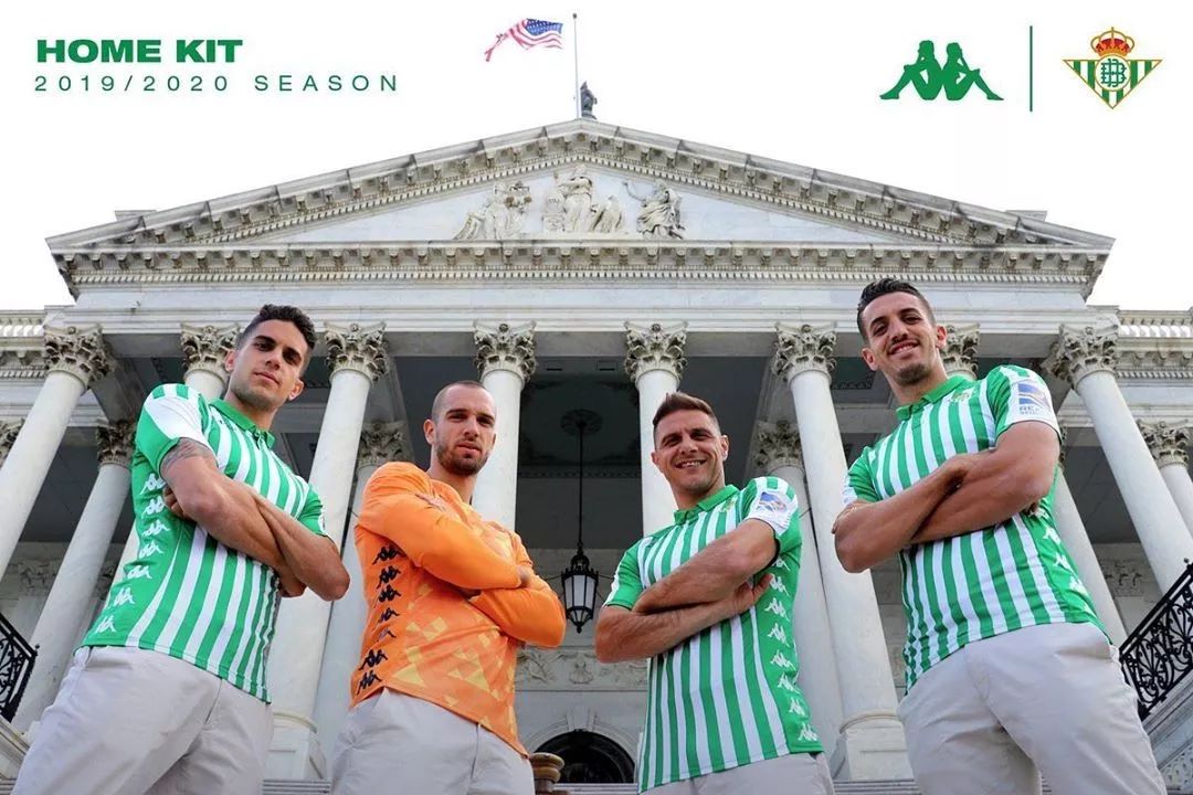 与同城死敌塞维利亚红形成鲜明对比的是皇家贝蒂斯的绿白条纹球衣,绿白与条纹是球队至关重要的设计元素。新赛季的条纹比上赛季更加纤细,搭配polo领显得清爽干练。球衣背面衣领下方印有#TEQUIEROBETIS(#我爱贝蒂斯)字样的话题,体现球迷对俱乐部的支持。