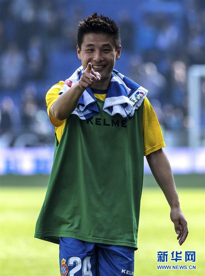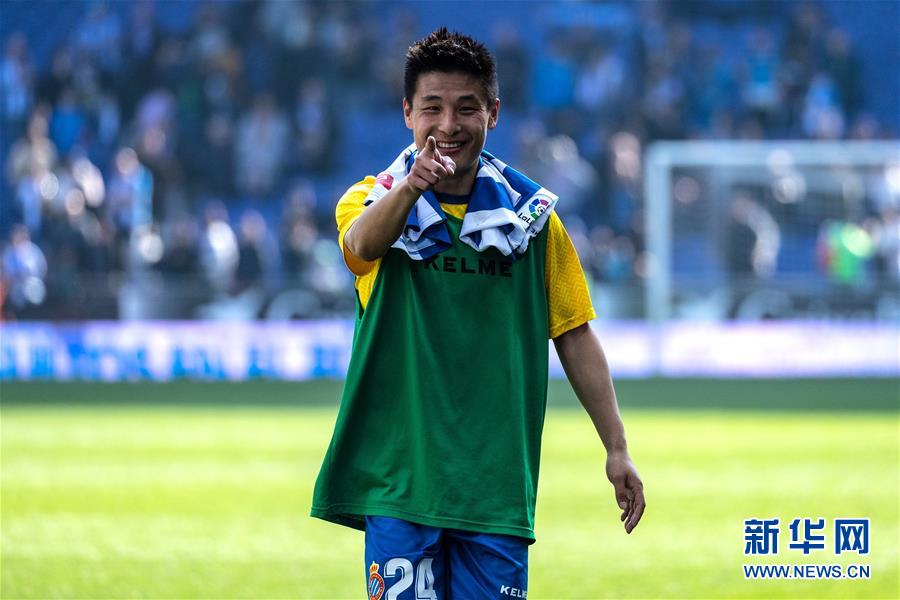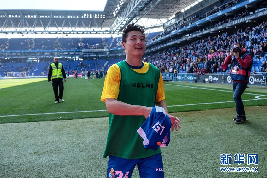 3月2日,西班牙人队球员武磊在比赛后。 当日,在2018-2019赛季西班牙足球甲级联赛第26轮比赛中,西班牙人队主场以3比1战胜巴拉多利德队。中国球员武磊在本场比赛中攻入一球,收获自己在西甲联赛的首粒进球。 新华社发(胡安·戈萨摄)