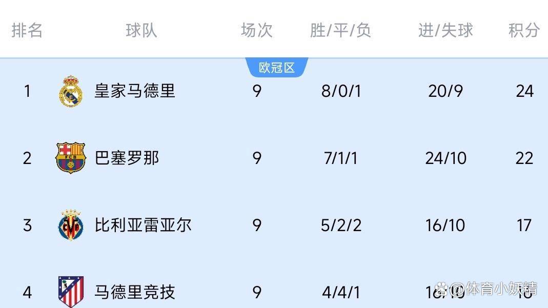 西甲联赛九轮过后,争冠和保级格局初步显现。 皇马和巴萨形成第一集团,三到六名球队分差仅有3分。 降级区竞争同样激烈,从第14名到第18名只有4分差距。
