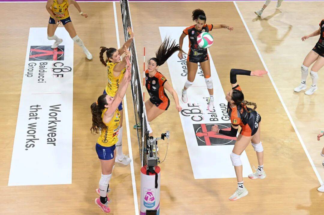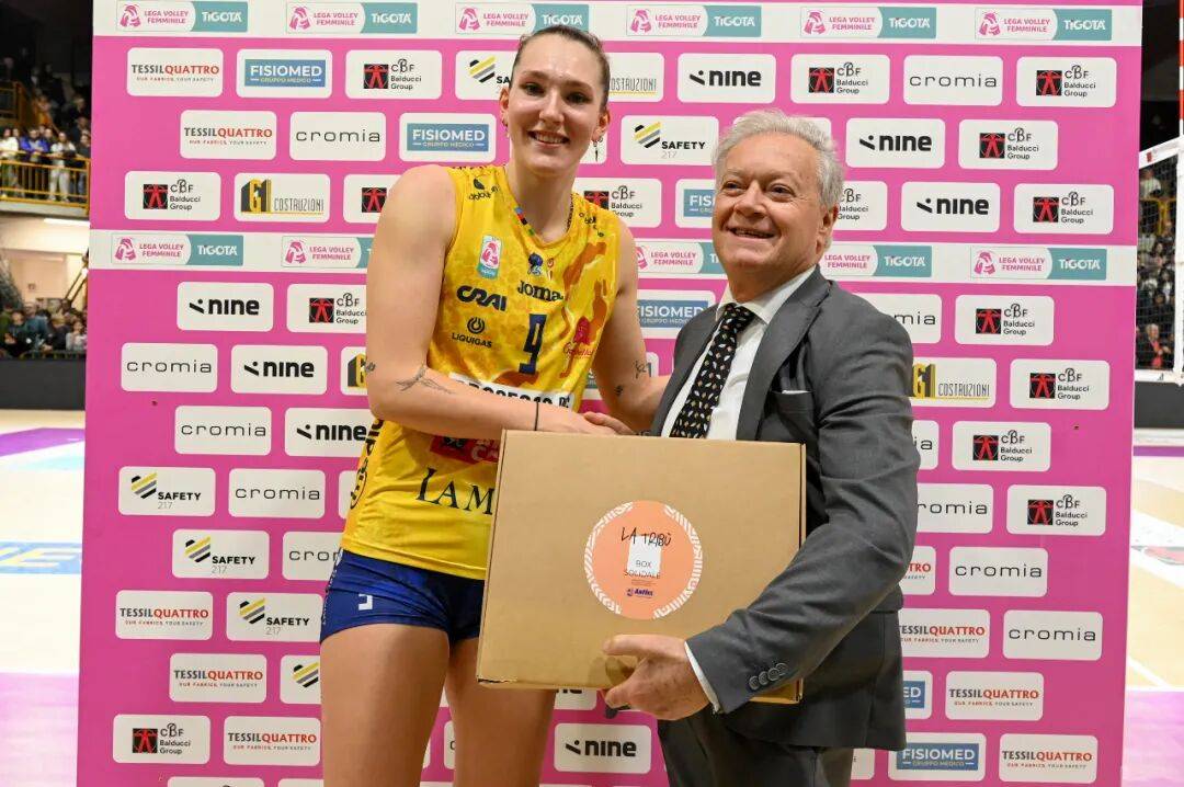 该场次科内利亚诺4人上双,加比16分(24扣15中1拦),齐里切拉11分(12扣9中2拦),卢比安11分(14扣10中1发)并且获得MVP,哈克11分(21扣11中)。马切拉塔女排则只有1人上双,德科尔特斯11分(33扣9中2拦)。